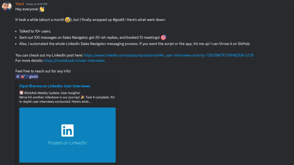 Here is the link to my post on discord #goals channel